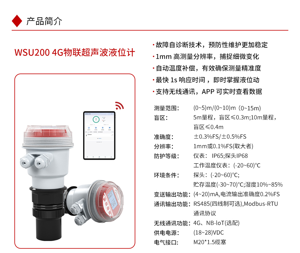 WSU-200 4G物联超声波液位计