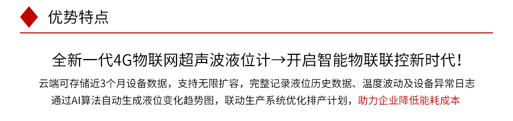 J9.COMWSU-200 4G物联超声波液位计具有高可靠性、高性价比、易安装维护的液位/物位测量仪器,可广泛用于各种液体和固体物料高度的测量。本产品可选配 NB-IoT 无线通讯功能,用户可在仪表云平台进行数据查看和远程监控。常见的应用工况,如市政、化工、储运等工业环境中的河流、水池、储罐等液位测量。咨询热线:400-152-1718