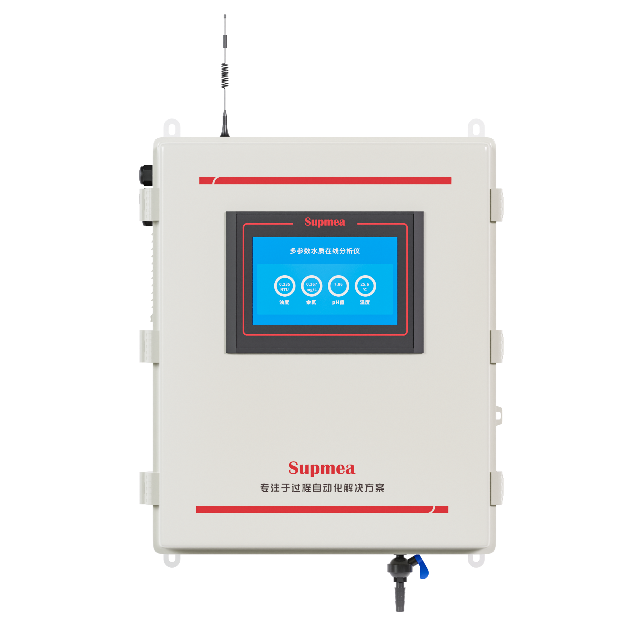 本款多参数水质在线分析仪是本公司自主研发制造的新一代饮用水水质监测设备,该设备可广泛用于城市或村镇自来水厂、自来水输水管网、自来水二次供水、用户末梢、室内游泳池、大型净水设备和直饮水等水质在线监测,是水厂生产过程控制、水利水务管理、卫生监督等领域必不可少的在线分析设备。